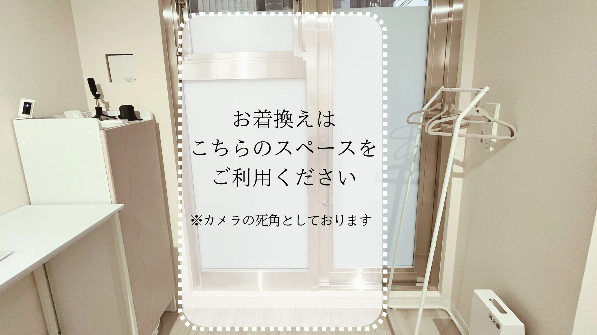 入室しましたらスタジオ内にあるガイドブック(pdf)を必ずご覧ください。お着替えは写真のエリアをカメラで映さないようにしておりますのでご利用ください。